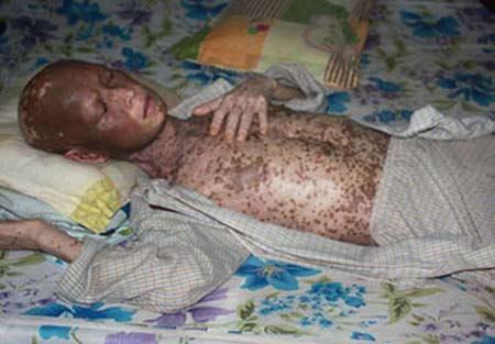 Trên da còn có những vệt loằng ngoằng dài. Lúc đầu ông tưởng bị dị ứng nên đi khám da liễu nhưng không khỏi bệnh.