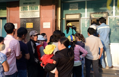 Anh Hoàng Thế Thiện, công nhân tại khu chế xuất Linh Trung, cho biết: “Mấy ngày gần đây hầu như các cây ATM trong khu vực đều trong tình trạng hết tiền. Muốn rút được tiền phải túc trực liên tục. Cứ hết ca là phải ra ngay điểm ATM để xếp hàng. Nhiều người có khi phải đợi cả nửa tiếng đồng hồ mới tới lượt mình rút.”